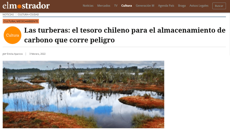 Turberas en El Mostrador Publicado el 25 febrero, 2022 por leonvaldebenito Revisa la nota realizada por El Mostrador en donde pudimos dar nuestro punto de vista sobre las turberas. El Mostrador https://www.elmostrador.cl/cultura/2022/02/03/las-turberas-el-tesoro-chileno-para-el-almacenamiento-de-carbono-que-corre-peligro/ Relacionado